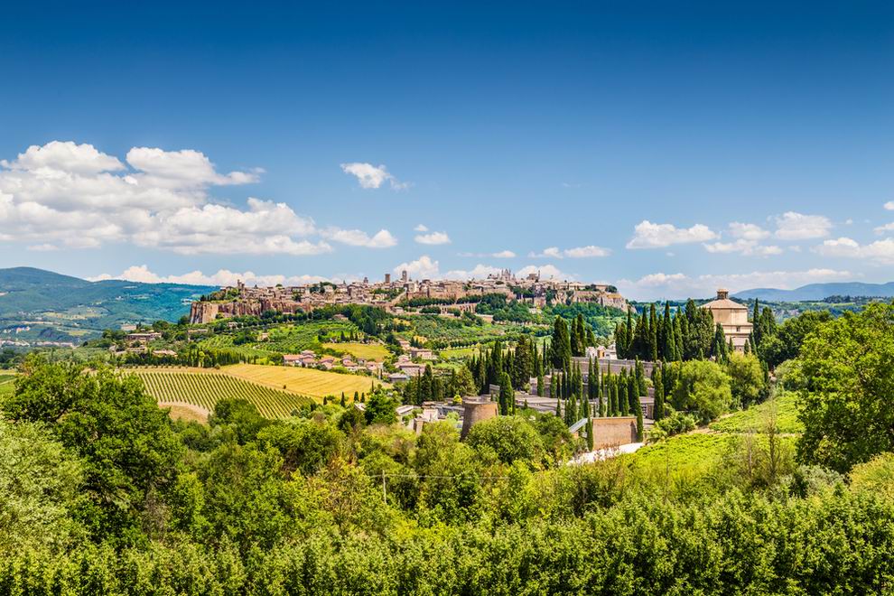 Orvieto egy meredek tufaszikla tetején áll, ahonnan még a város határán belüli mozgáshoz is sikló segít. A Dóm az olasz gótikus építészet remeke, belső freskói közül Luca Signorelli Utolsó ítélet című alkotása kiemelkedő. Orvieto alatt kiterjedt barlang- és alagútrendszer található, amelyek egy része látogatható is. A városban évente megrendezett Corpus Domini ünnepség különösen látványos.